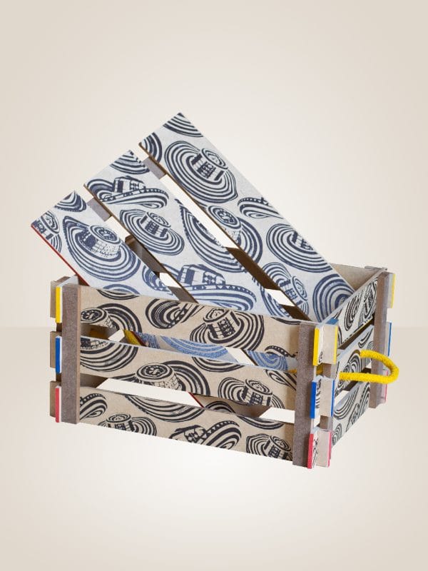 Materiales: MDF (Madera ecológica reforestada) con estampados decorativos especiales colombianos en la caja y en la tapa realizados con pintura libre de toxinas. Tiene los bordes pintados con los colores de la bandera colombiana.